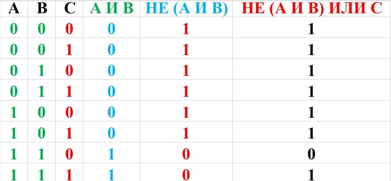 2) НЕ (¬, черта над выражением) - значение противоположно исходному высказыванию