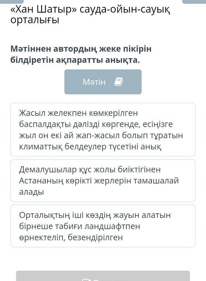 Мәтіннен автордың жеке пікірін білдіретін ақпаратты анықта.