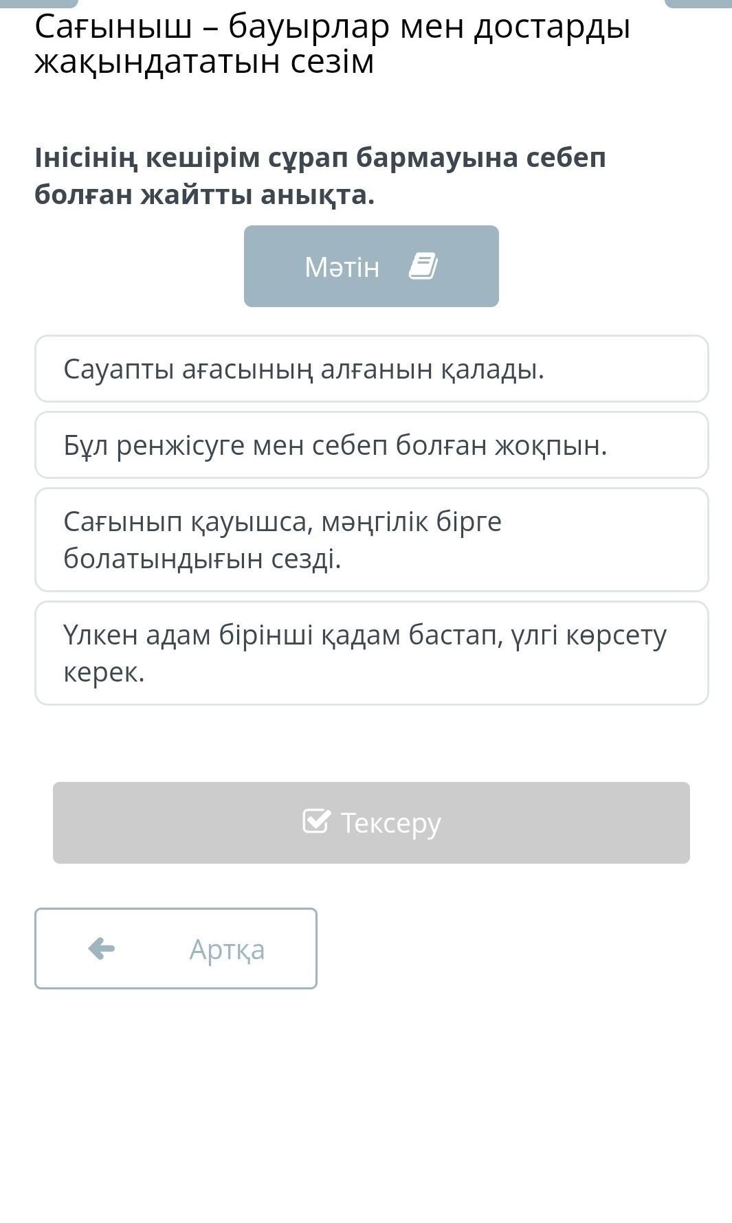 Інісінің кешірім сұрап бармауына себеп болған жайтты анықта.