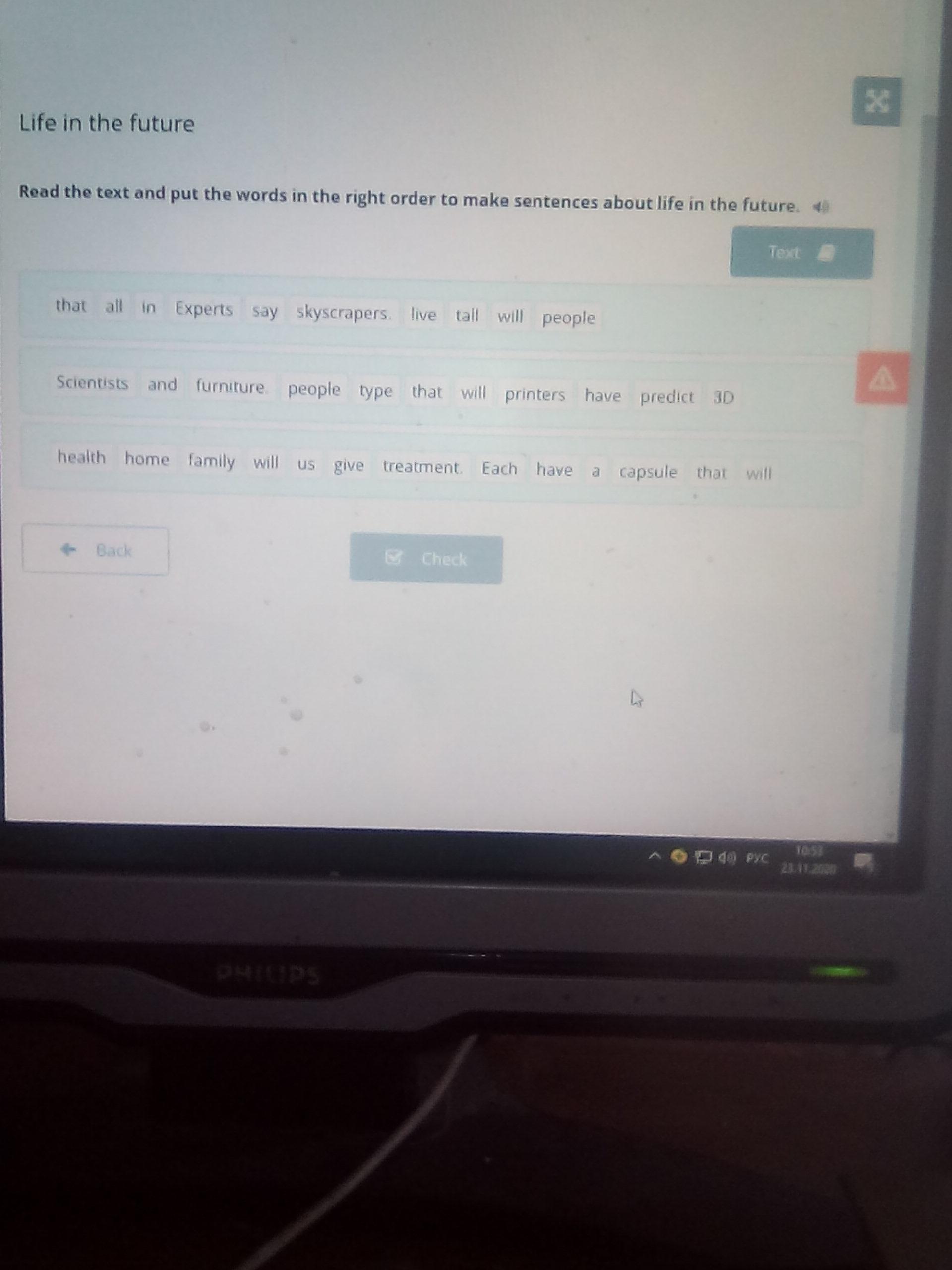 Read the text and put the words in the right order to make sentences about life in the future.