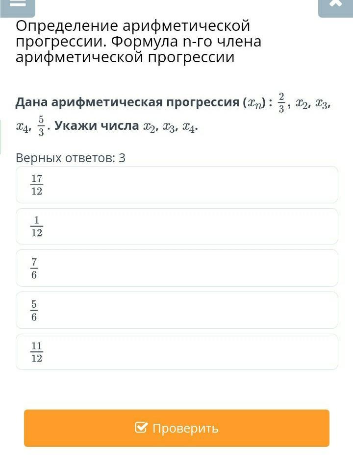 Дана арифметическая прогрессия (xn) : 2/3, x2, x3, x4, 5/3.