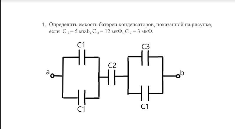 если С 1 = 5 мкФ, С 2 = 12 мкФ, С 3 = 3 мкФ.