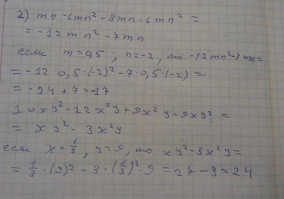 2)mn-6mn^2-8mn-6mn^2, если m=0,5 n= -2.