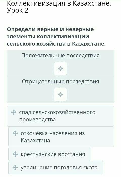 Определи верные и неверные элементы коллективизации сельского хозяйства в Казахстане