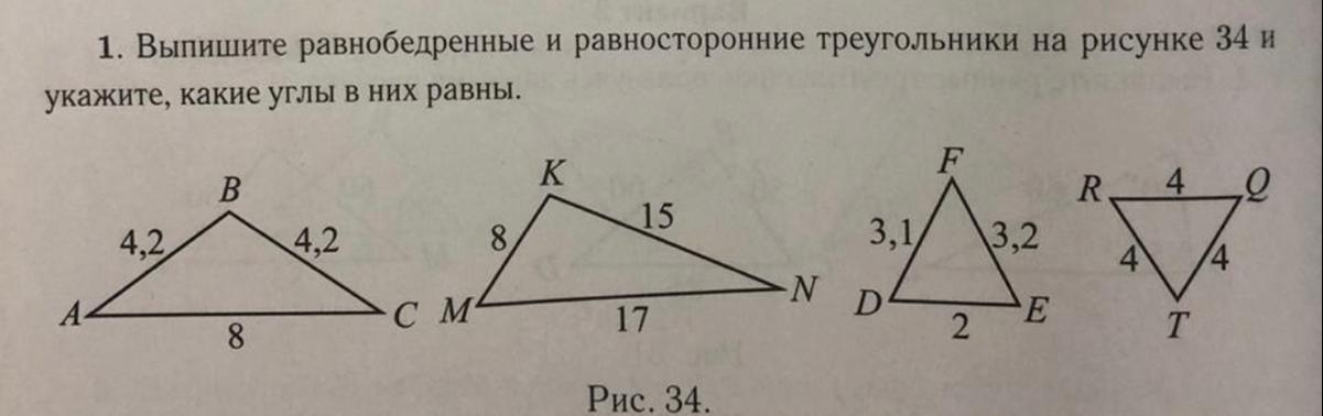 ΔАВС - ∠А=∠С; ΔDFE - ∠D=∠E.