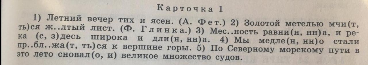 1) Летний вечер тих и ясен.2) Золотой метелью мчится желтый лист.3)Местность равнина , и река здесь широка и длина.4)Мы медленно стали приближаться к вершине горы.5)По Северному морскому пути в это лето сновало великое множество судов.
