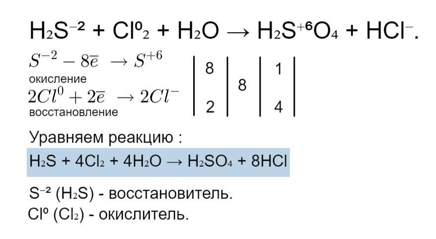 H2S + Cl2 + H2S04+ HCl