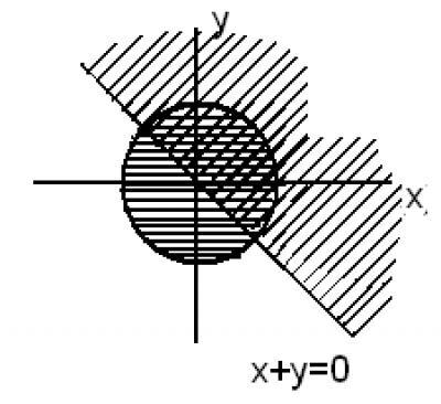 6. Выбираем в одной из этих частей контрольную точку. Определяем знак выражения f (х; у)