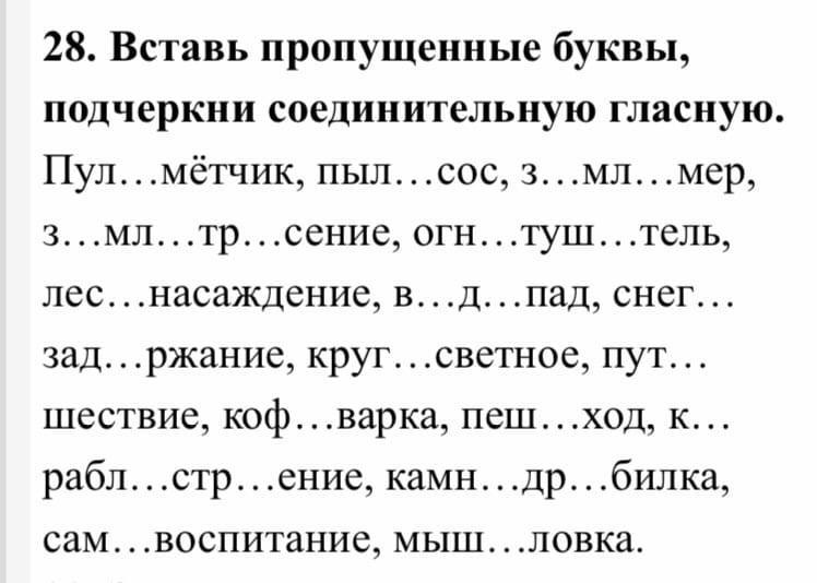 Пулемётчик,пылесос, землемер, землетрясение, огнетушитель, лесонасаждение, водопад, снегозадержание, кругосветное, путешествие, кофеварка, пешеход, кораблестроение, камнедробилка, самовоспитание, мышеловка.