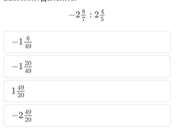 -2 8/7÷2 4/5= -22/7÷14/5=-22/7×5/14=-110/98= 55/49= -1 6/49