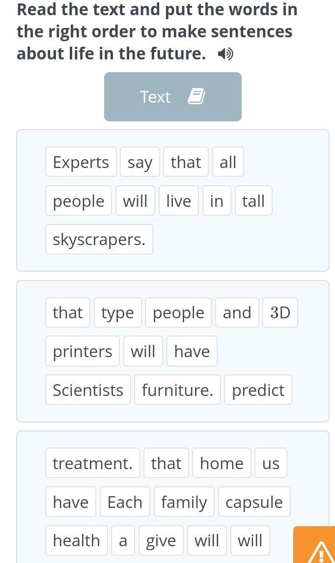 Read the texs and put the words in the right order to make sentences about life in the future..)))????