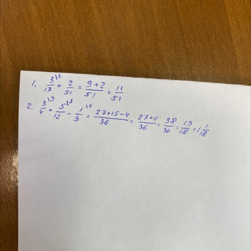 3/4 + 5/12 - 1/9 = 9+5/12 - 1/9 = 14/12 - 1/9 = 42-4/36 = 38/36 = 1 2/36= 1 1/18