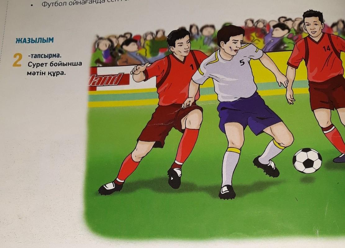 Бүгін футбол. Ойын өте қызықты өтуде. Екі жақтың ойыншылары да жақсы ойнауда. Міне, доп менің досымда, қазір ол қарсыласының қақпасына доп салып, бізді қуантады деп ойлаймын.