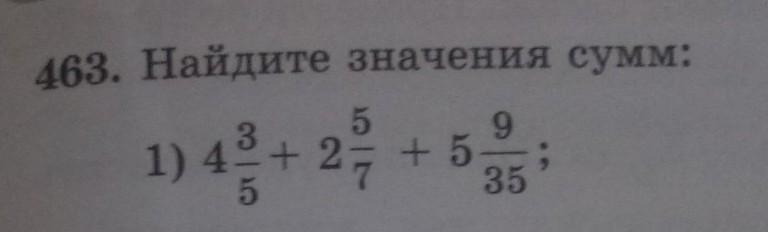 1)4 целых 3/5 + 2 целых 5/7 + 5 целых 9/35; пожалуйста помогите