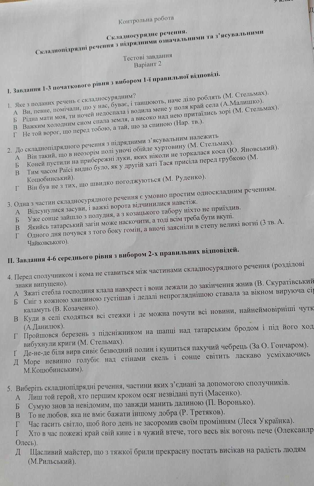 5. Виберіть складнопідрядні речення, частини яких з'єднані за допомогою сполучників.