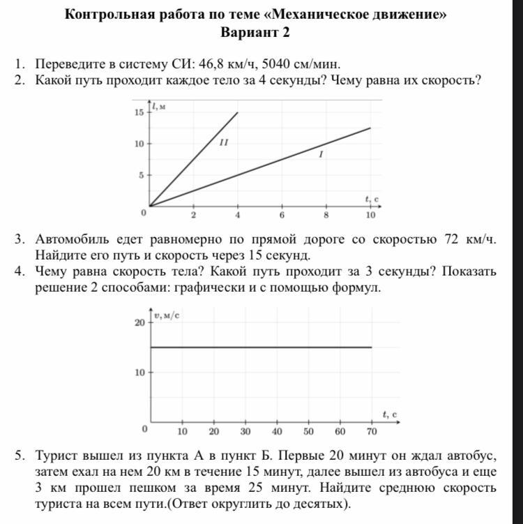 4.Чему равна скорость тела? Какой путь проходит за 3 секунды? Показать решение 2 способами: графически и с помощью формул.