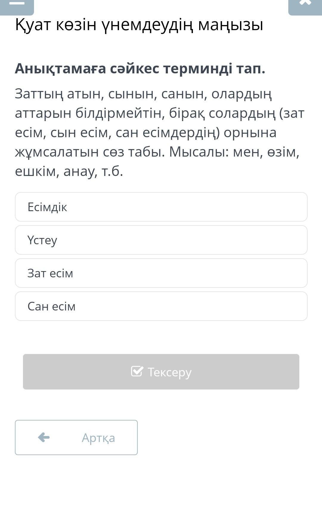 зат есім деп ойлаймын. кім? не? деген сұраққа жауп береді