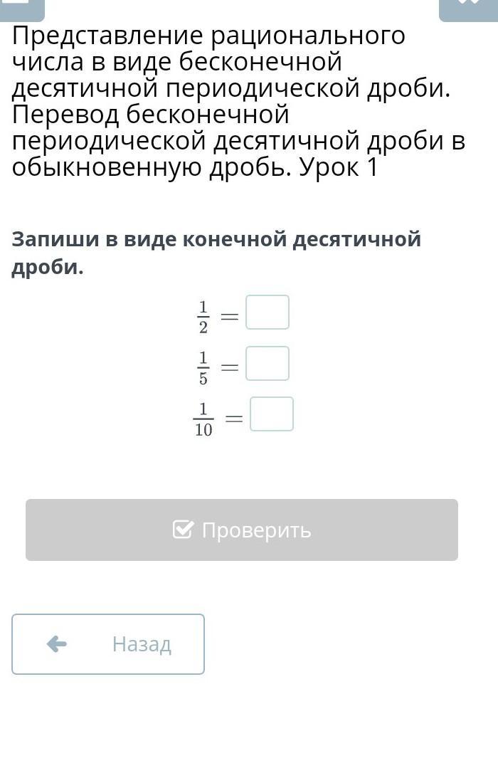 Представление рационального числа в виде бесконечной десятичной периодической дроби. Перевод бесконечной периодической десятичной дроби в обыкновенную дробь. Урок 1