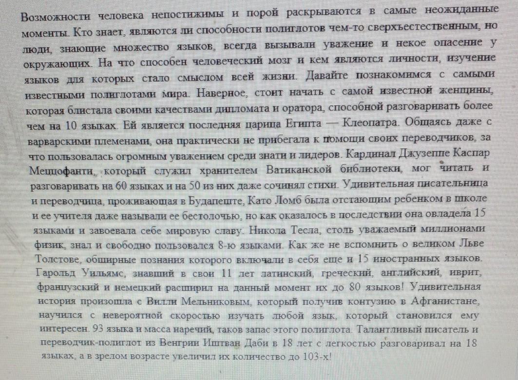 3. Прочитай текст и на основе текста напиши эссе «Как стать великим полиглотом» в своей