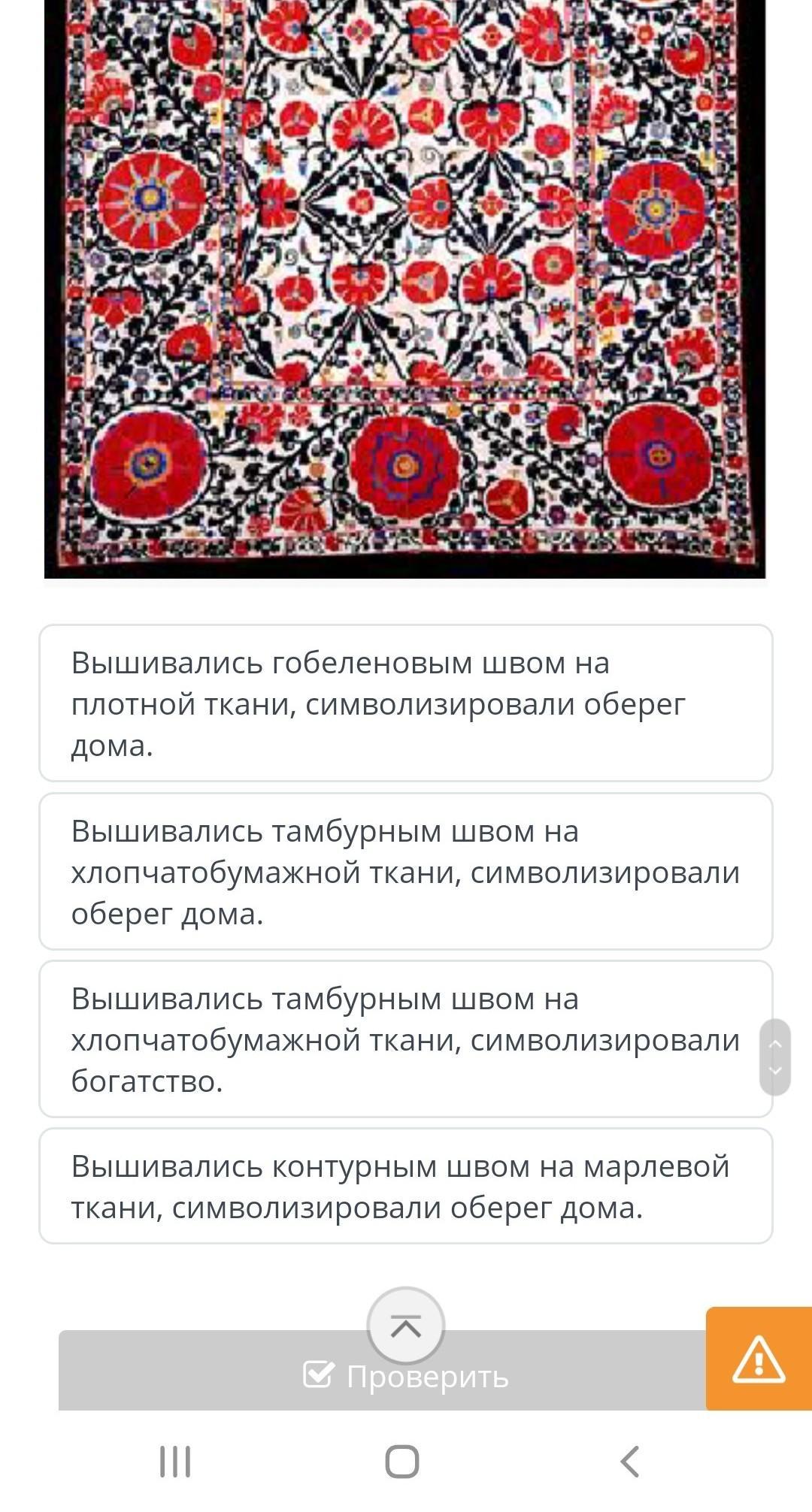 Рассмотри и определи технику выполнения декоративного панно «Сузане». Проанализируй, что символизировали такие панно.Помогите пожалуйста!
