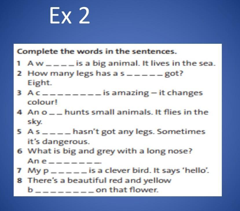 1. A whale is a big animal. It lives in the sea.