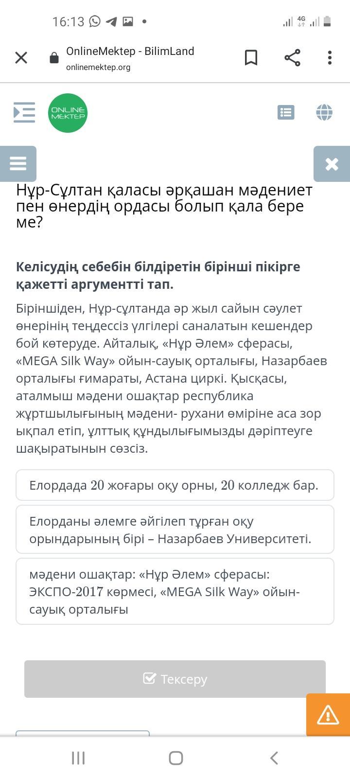 Мәдени ошақтар:"Нұр сұлтан әлем" сферасы ЭКСПО-2017 көрмесі,"MEGA SilkWay"ойын сауық ортплығы