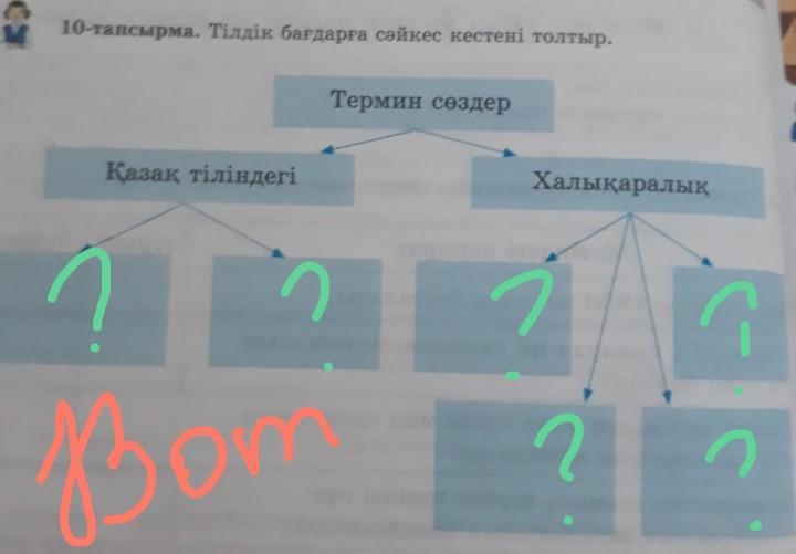 10-тапсырма. Тілдік бағдарға сәйкес кестені толтыр.