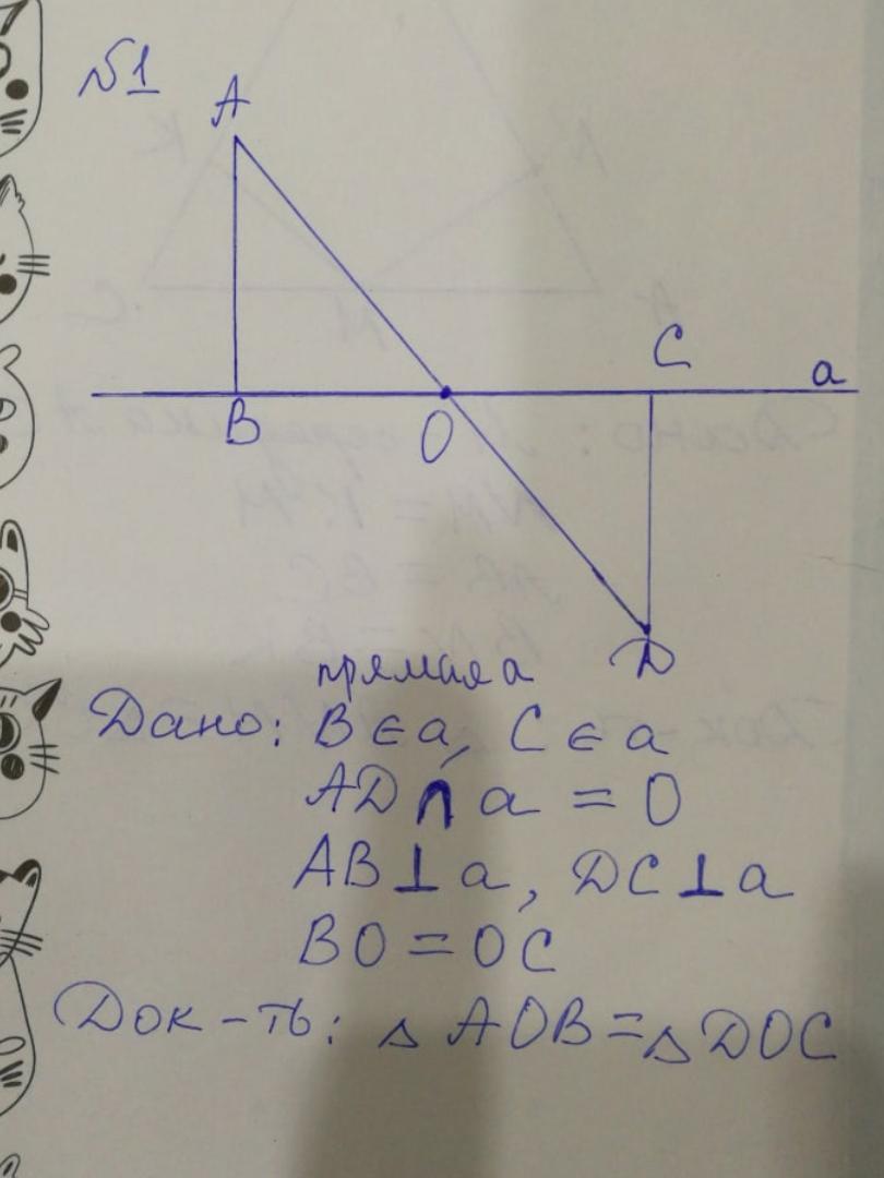 АОВ= DOC, по второму признаку. угол АВО= углу DCO= 90°. угол AOB= COD, как вертикальные. ВО=ОС по условию