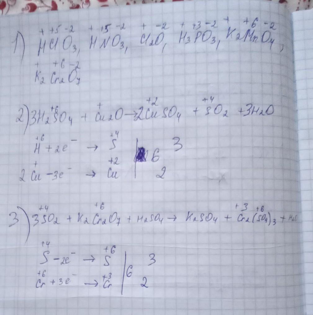 ⦁ Рассчитайте степени окисления химических элементов в соединениях: HCIO3, HNO3, CI20, H3PO3, K2MnO4, K2Cr2O7