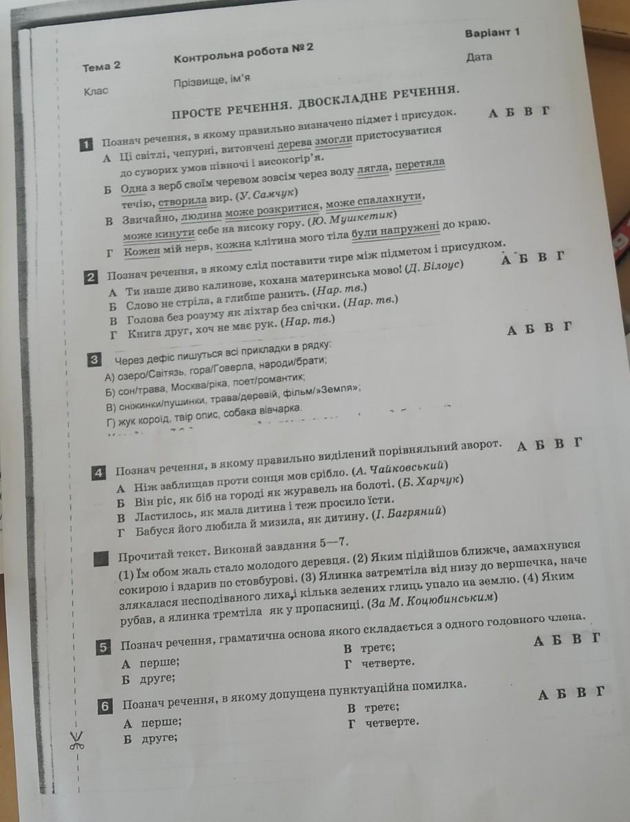1. А 2. А 3. Б 4. В 5. А 6. Г