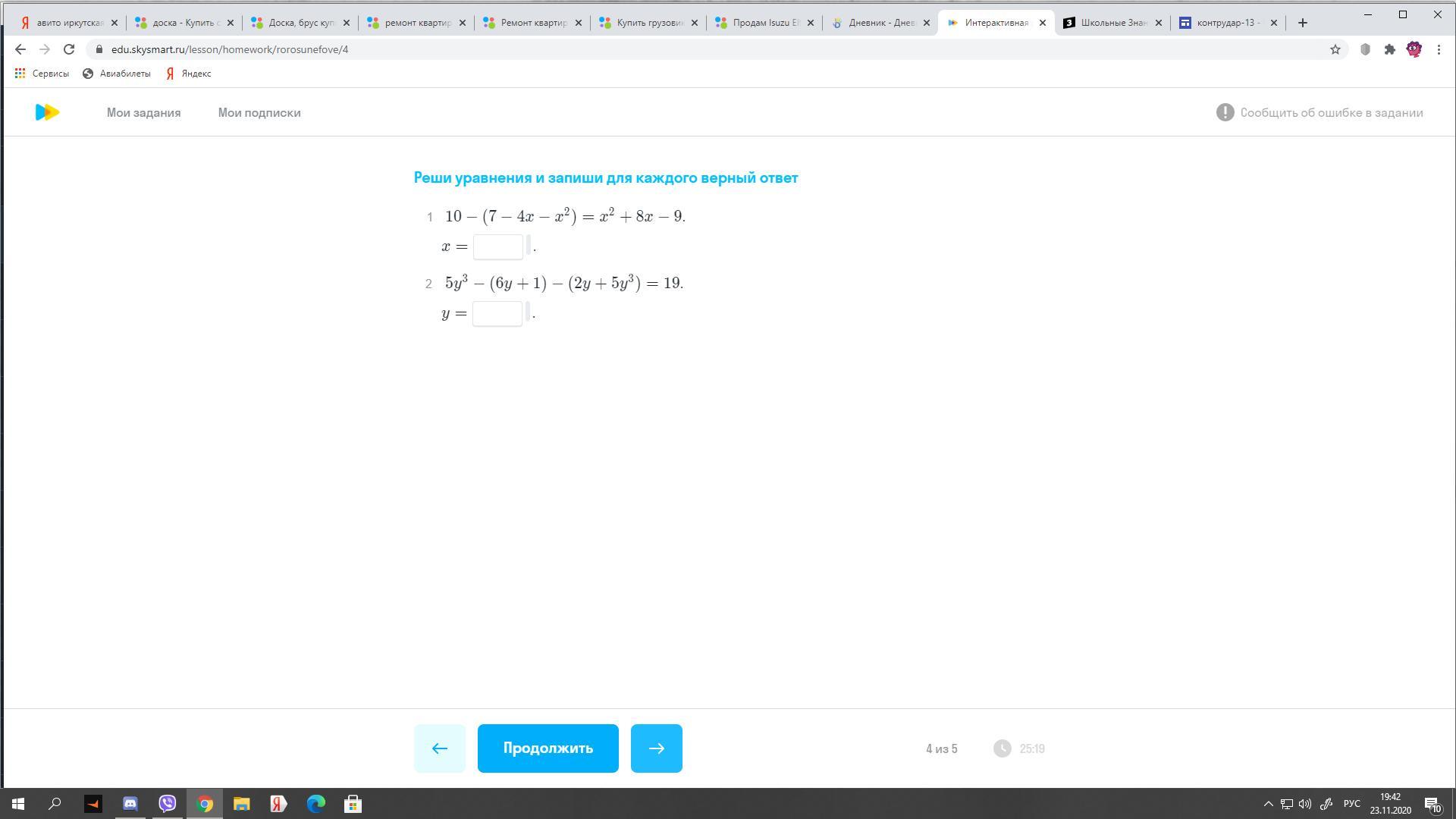 5у^3-(6у+1)-(2у+5у^3)=19