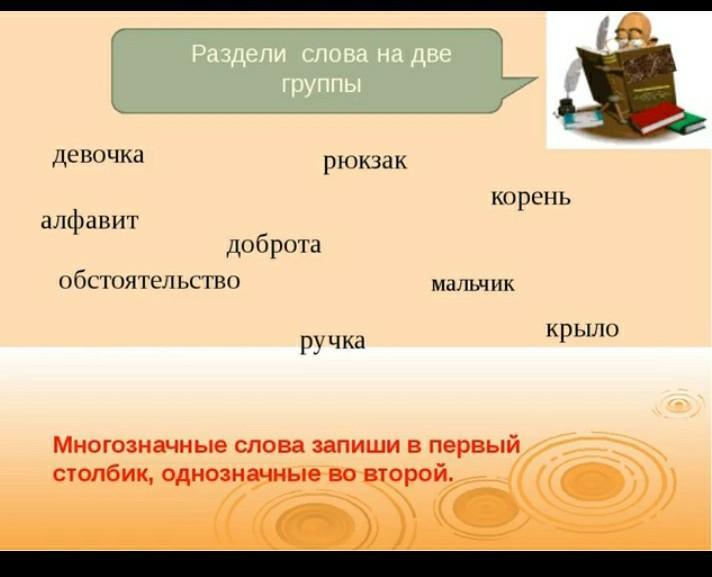 Однозначные: девочка, рюкзак, алфавит, доброта, мальчик, обстоятельство