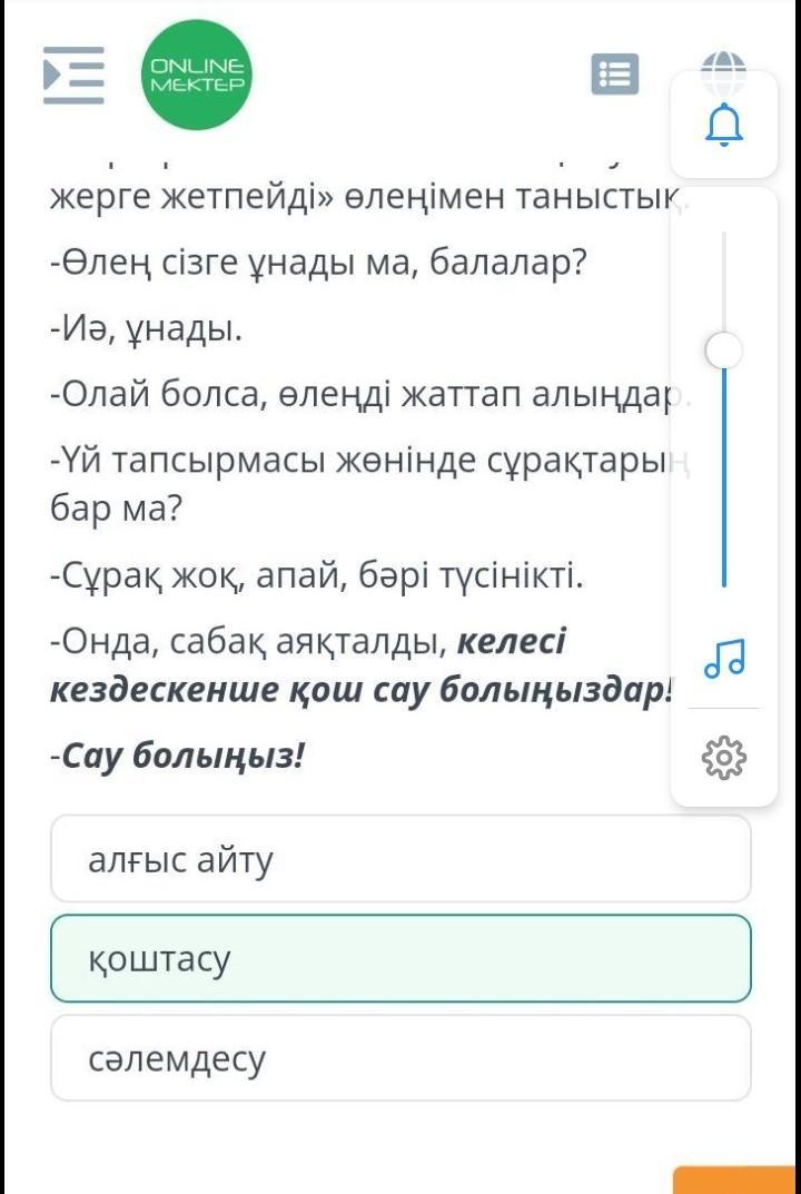 -Онда, сабақ аяқталды, келесі кездескенше қош сау болыңыздар!
