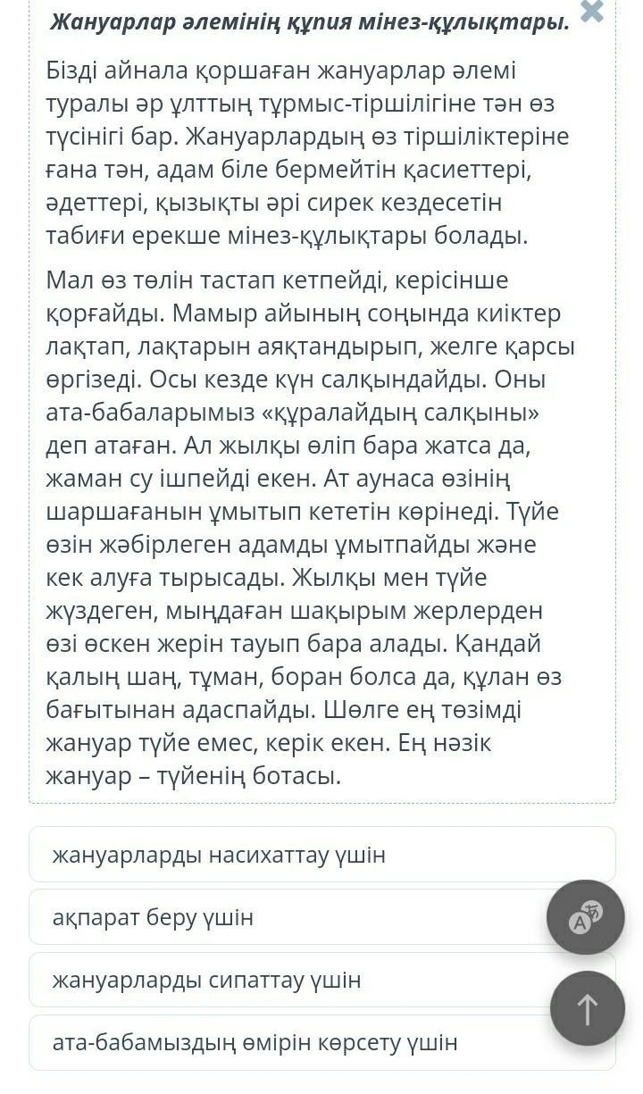 Мәтінді мұқият оқы Мәтін қандай мақсатта жасалғанын анықта. пж даю много баллов