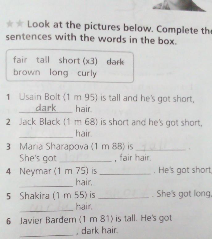 4) Neymar (1m 75) is short. He's got short brown hair.