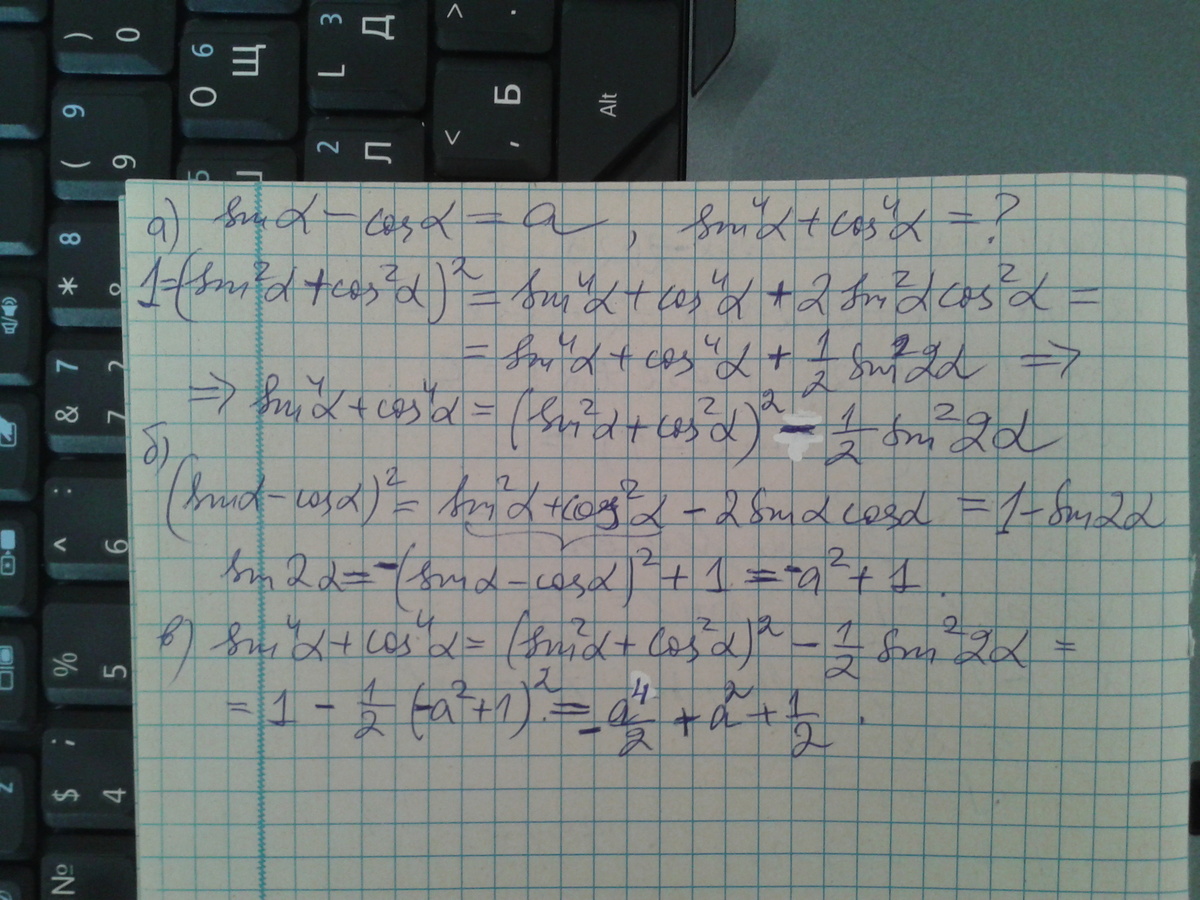 sin a-cos a=a найдите значение выражения sin^4a+cos^4a