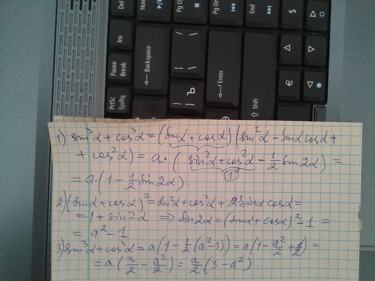 Известно что sin a+ cos a=a.найдите значение выражения sin^3 a+cos^3a