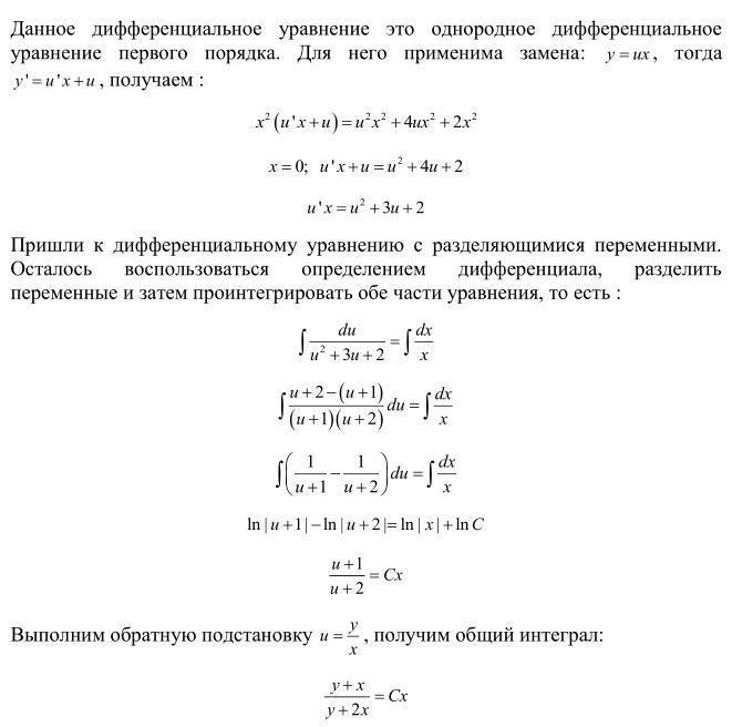 Показать, что данные дифференциальные уравнения являются однородными и решить их (форматирование на фотографии)