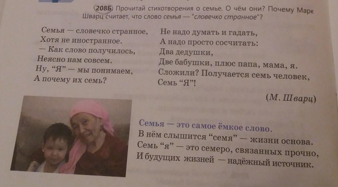 208Б, Прочитай стихотворения о семье. О чём они? Почему Марк