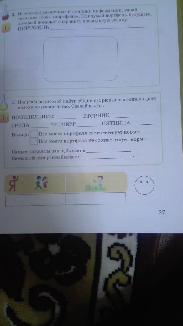 4. Ну сделаем примерно, так как норма веса портфеля во 2-ом классе составляет примерно около 2-х кг. Например: ПОНЕДЕЛЬНИК- 1,5 КГ