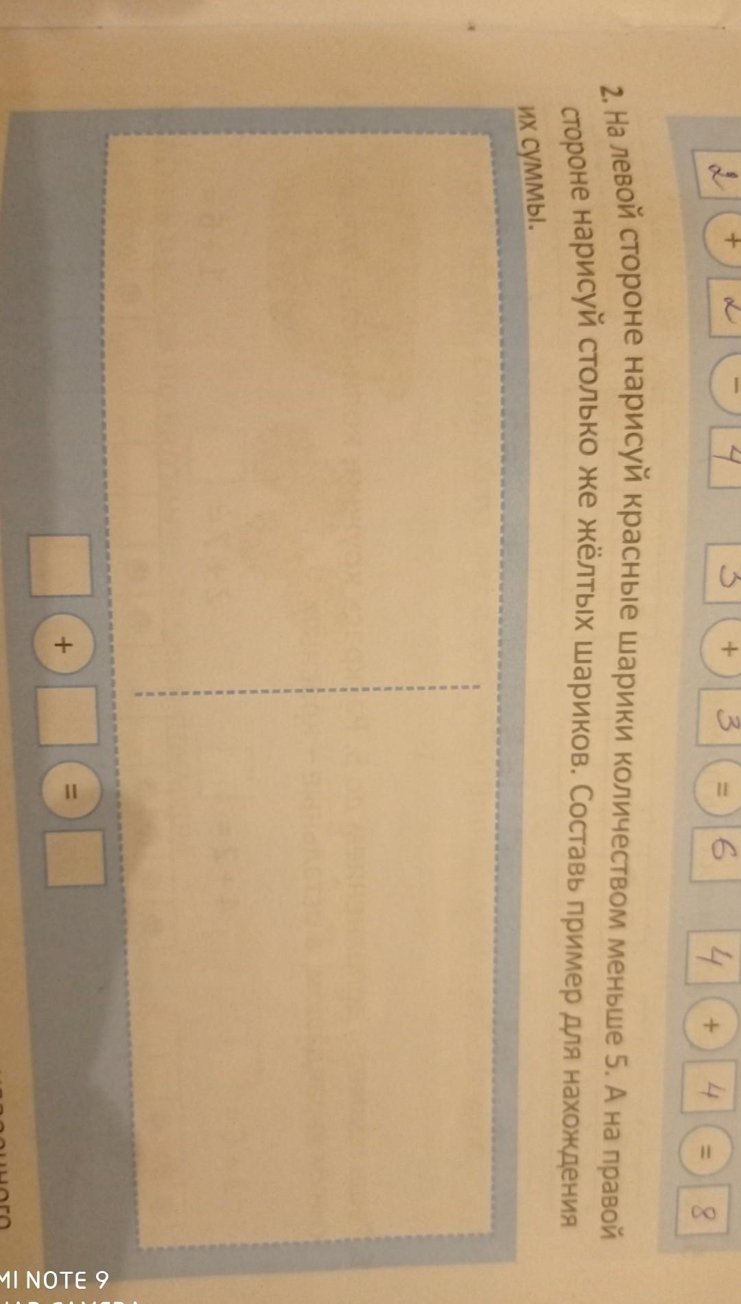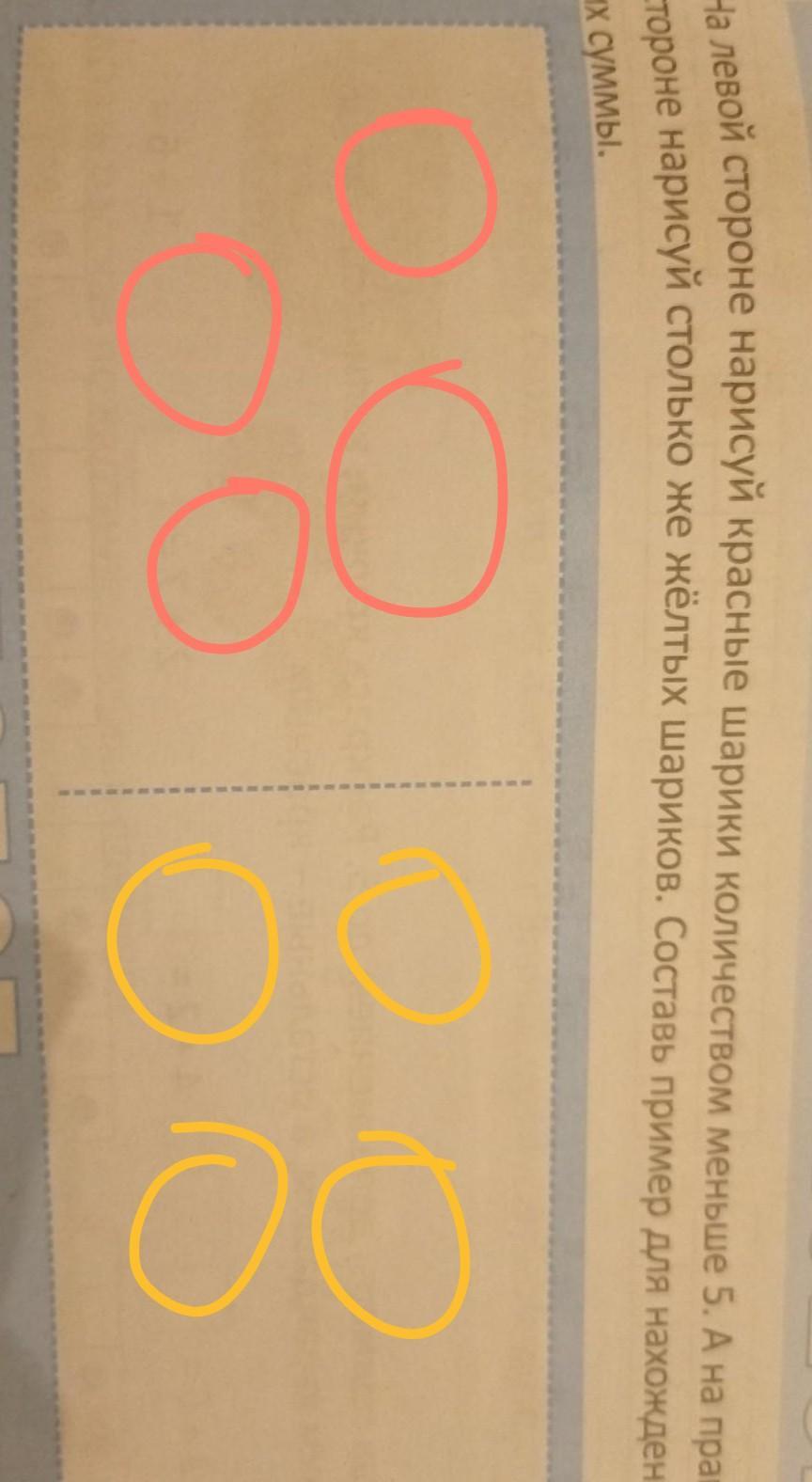 на левой стороне нарисуй красные шарики количество меньше 5 А на правой стороны если столько жёлтых шариков состав пример для нахождения их суммы
