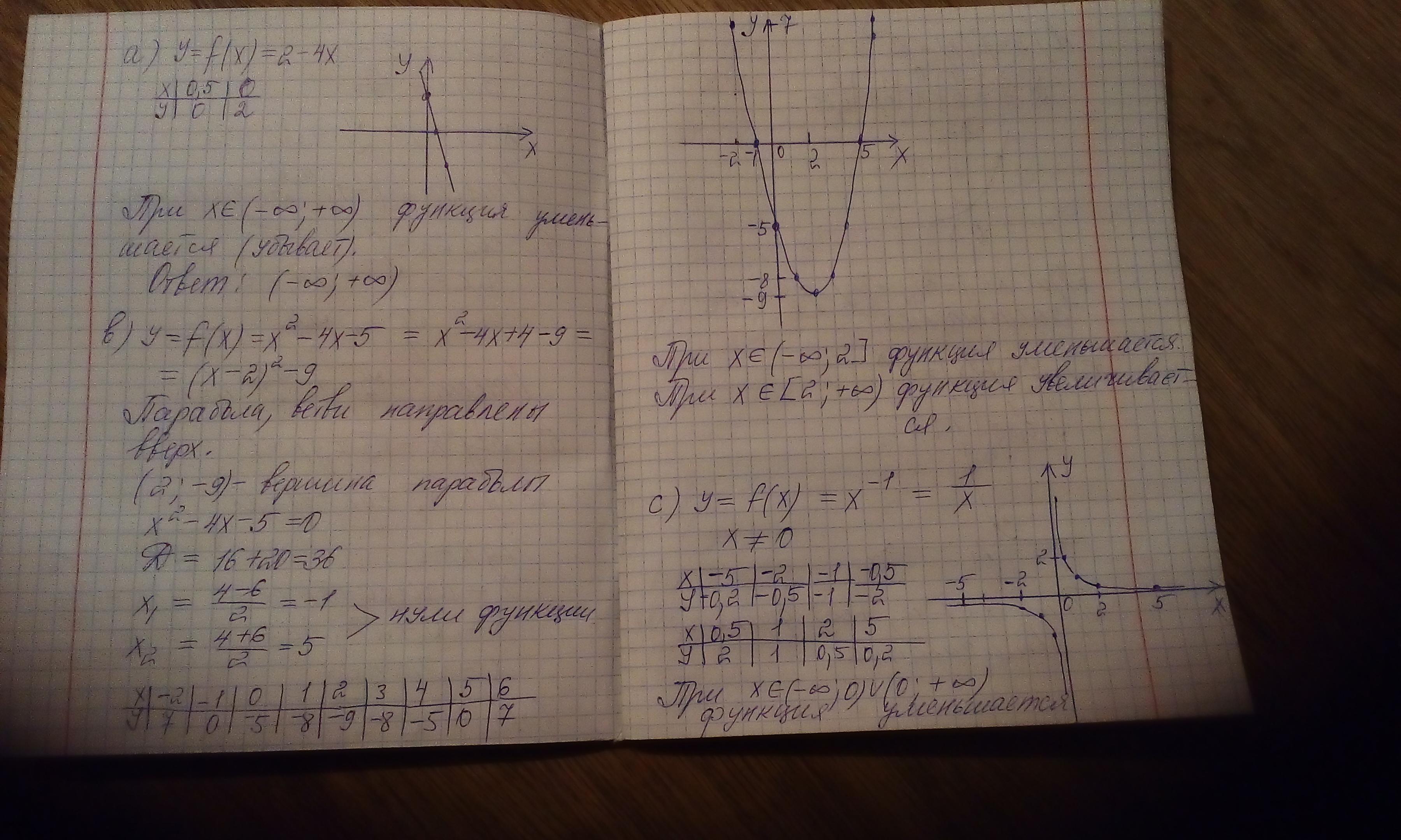 нарисуйте маленький график и используя его найдите его интервал в котором значения функции увеличиваются; уменьшаются