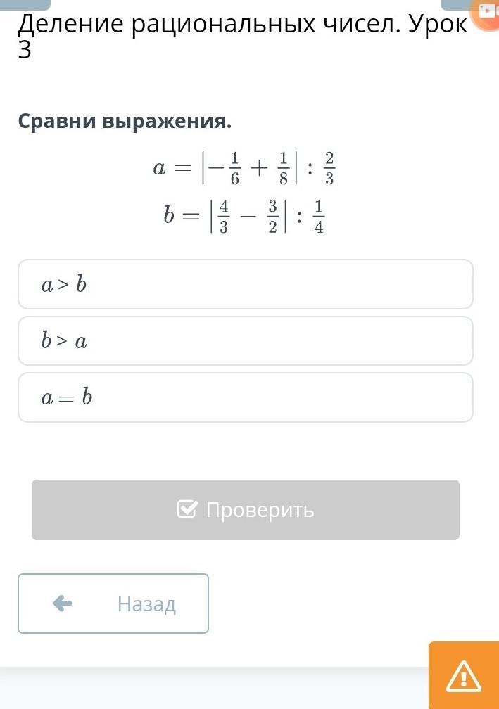 а=/ -4/24+3/24/: (2/3)=1/24*3/2=1/16=3/48