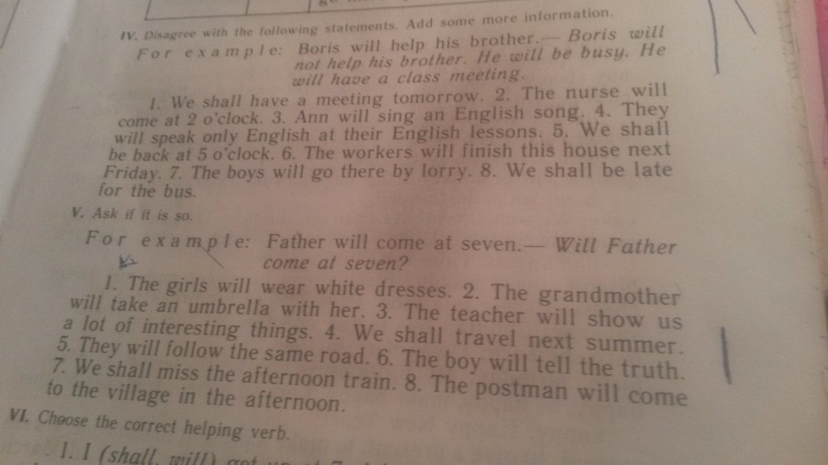 7. The boys will not go there by lorry. They don`t like a lorry. They will go by bus. 8. We shall not be late for the bus. We shall be in time. We shall go out the house earlier.