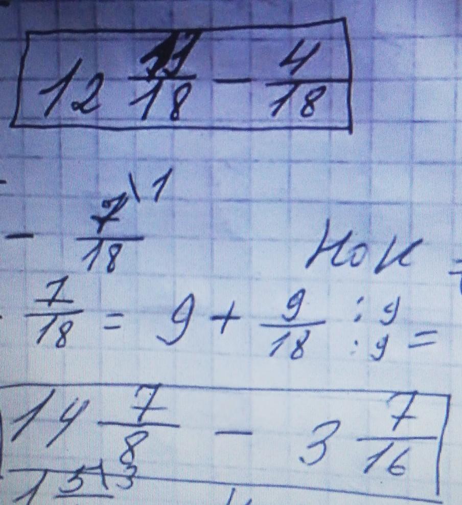помойму будет так 12 13/18 - 4/18 = 12 9/18