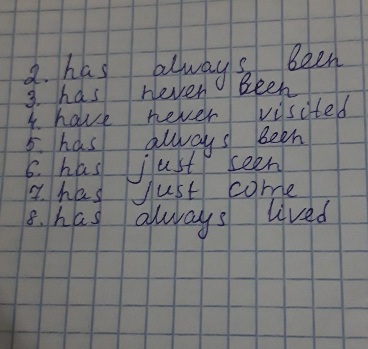 1. I ... (be) to Europe. I have never been to Europe.