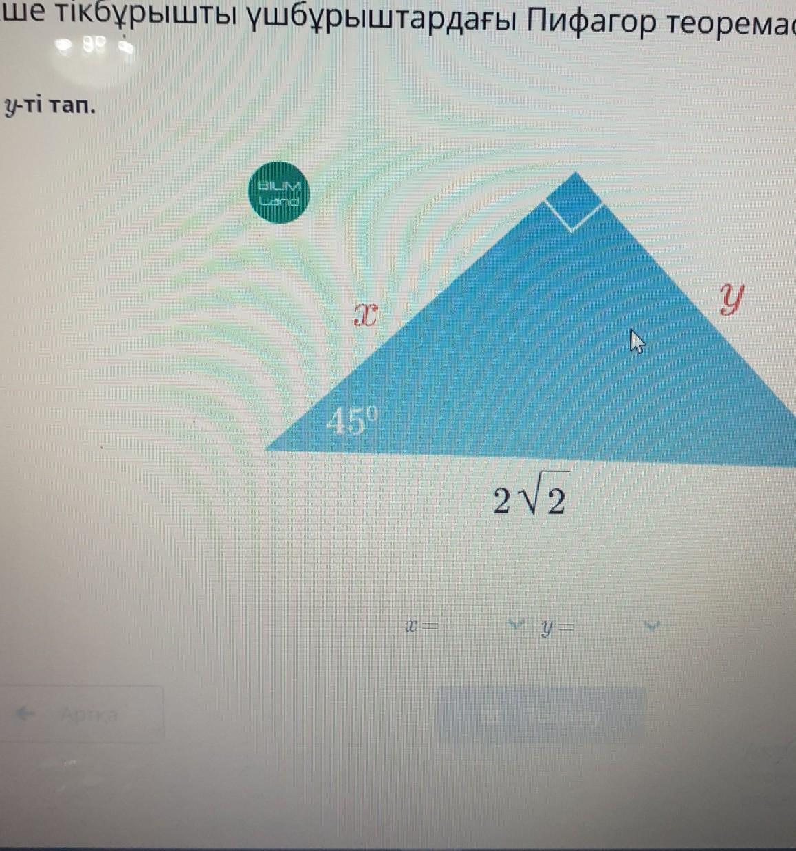 ∠В = 90° - ∠А = 90° - 45° = 45°