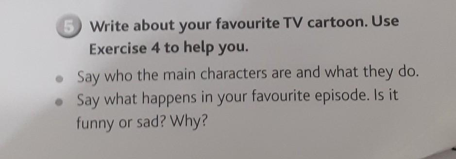 Напиши о твоём любимом мультфильме.Используй задание 4 (опираясь на это задание,в кратце 4 задание поможет)