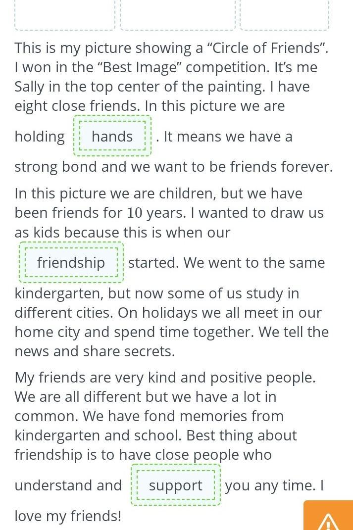 started. We went to the same kindergarten, but now some of us study in different cities. On holidays we all meet in our home city and spend time together. We tell the news and share secrets.