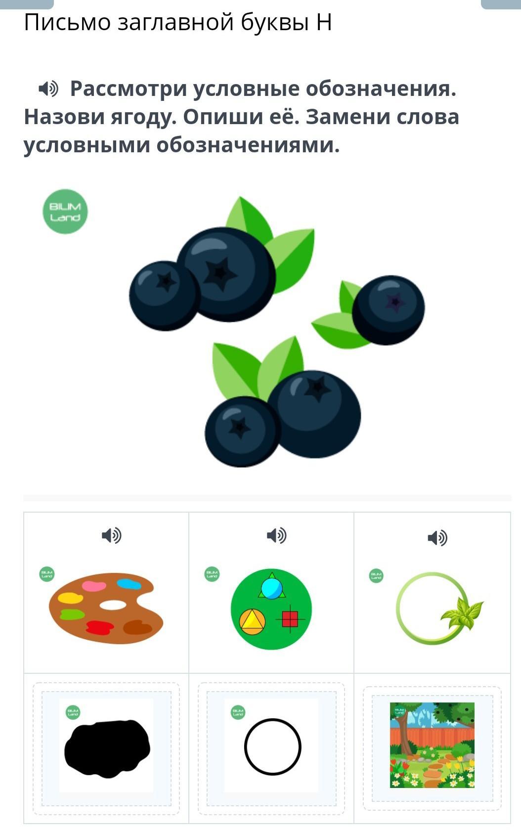Рассмотри условные обозначения. Назови ягоду. Опиши её. Замени слова условными обозначениями.